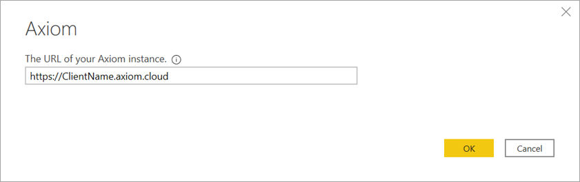 In the Axiom dialog, enter the URL to your Axiom Platform system, then click OK.