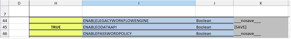 3. Locate the row for EnableODataAPI, and type True into the Modify column (H).