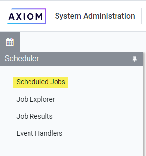 On the Scheduler page, from the Scheduler panel, select Scheduled Jobs.