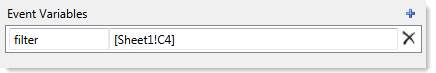 Optionally, the job can use variables. Variable values can be defined in the RunEvent function or command and passed to the job. You would do this if aspects of the job need to be dynamic; for example, if you want to use a different filter depending on which user is running the job or based on a user selection in the file. For more information see the Variable example section below.