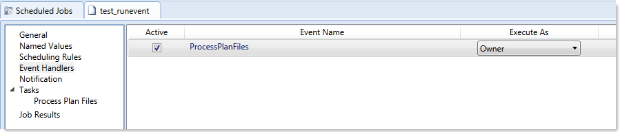 The job must contain an event handler that will be used to trigger the job execution. When creating the event handler, consider whether you want the job to run as the job owner, or as the requester (the user who clicks on the RunEvent function). This may impact email notifications and determines the user rights under which the job will run.