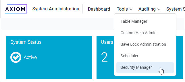 2. From the navigation menu, select ToolsSecurity Manager.