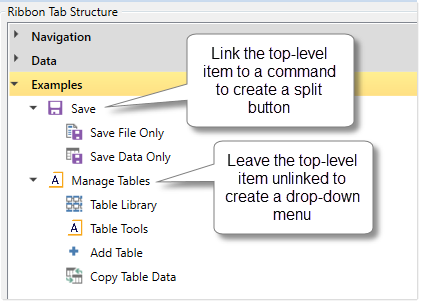 Creating drop-down menus and "split buttons" in a ribbon tab