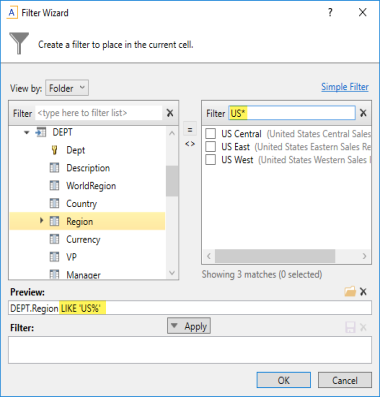 If the filter criteria statement is finished, click OK. The filter wizard will use the statement in the Preview box (you do not have to click Apply in this case).