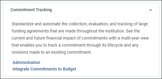 The Commitments section of the Command Center contains a link to the new Integrate Commitments to Budget utility.
