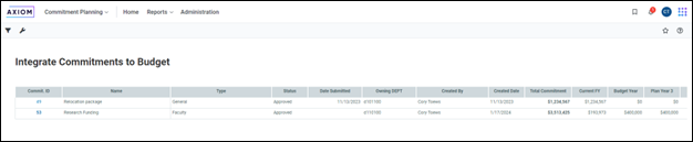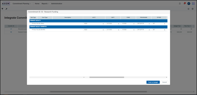Commitments admin users can now push plan data for approved Commitments to Budgeting plan files to prevent the need for double entry of Commitments plan data in Budget.