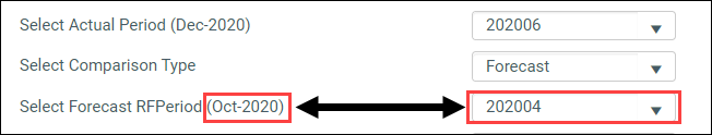 Forecast – Compares the actuals period to a forecast of the actuals period for a selected forecast year. If you select this option, a drop-down for selecting a forecast period displays. From the Select Forecast RFPeriod drop-down, select the forecast month.
