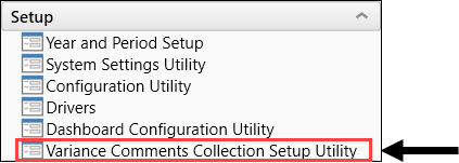 In the RF Admin task pane under Setup, double-click Variance Comments Collection Setup Utility.